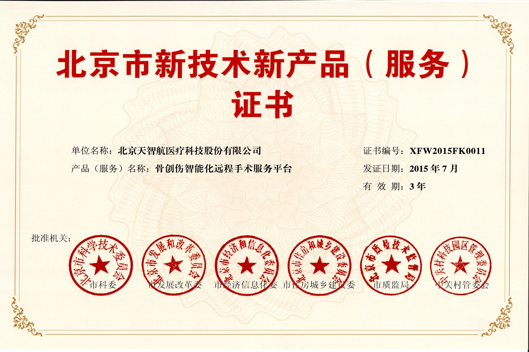 2015-北京市新技術新產品(服務)證書