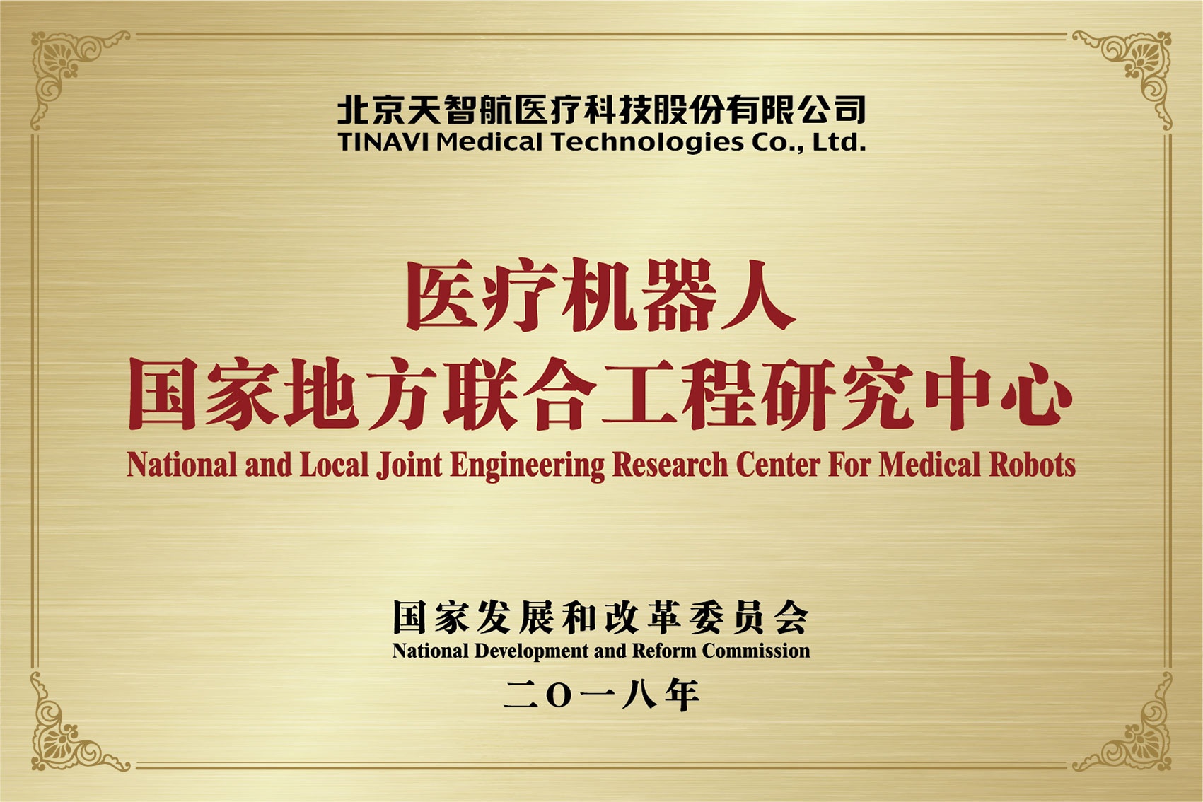 2018-醫療機器人國家地方聯合工程研究中心-國家發展和改革委員會