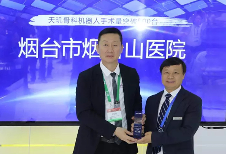 隨后,天智航董事長張送根先生分別為手術(shù)量達(dá)到300臺的新疆克拉瑪依市中心醫(yī)院、濟(jì)南市第三人民醫(yī)院以及手術(shù)量達(dá)到500臺的煙臺市煙臺山醫(yī)院頒獎。
